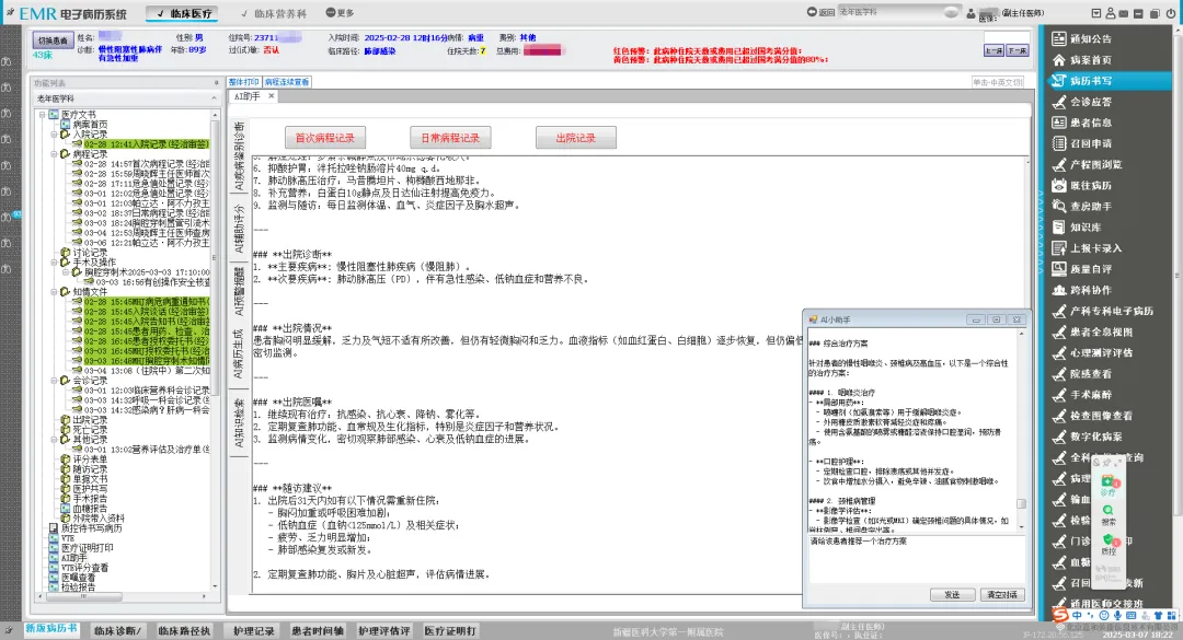 在临床应用方面,DeepSeek-R1大模型深度融合医院本地化知识库,依托先进的RAG增强型知识引擎,实现了医疗文书生成的智能化。它能够结合患者的检验结果、影像报告等关键信息,快速准确地生成出院记录、日常病程记录等医疗文书,极大地提高了病历书写效率。以老年医学科为例,自DeepSeek上线后,病历书写速度显著提升,让医生们能够将更多的时间和精力用于患者的诊疗与照护,为患者提供更优质、更贴心的服务,切实改善了患者的就医体验。