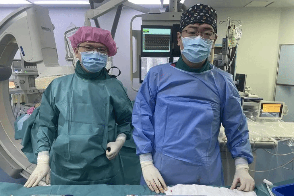 张疆华主任医师(右)、杨徐主治医师(左)为患者施术