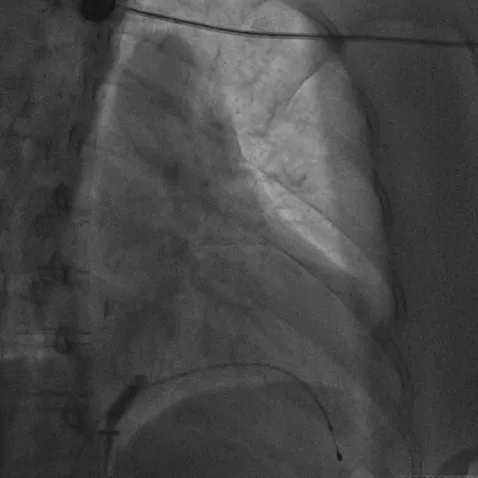 经过入院相关检查可见,患者存在心室起搏依赖,心脏超声示心脏扩大,左心室EF值低,动态心电图可见短阵多形性室速。心脏起搏电生理科就患者的病情展开充分的讨论,考虑无导线起搏器的右室起搏已不适合患者目前心脏情况,甚至会加重患者的心衰症状,晕厥由室性心动过速所致。