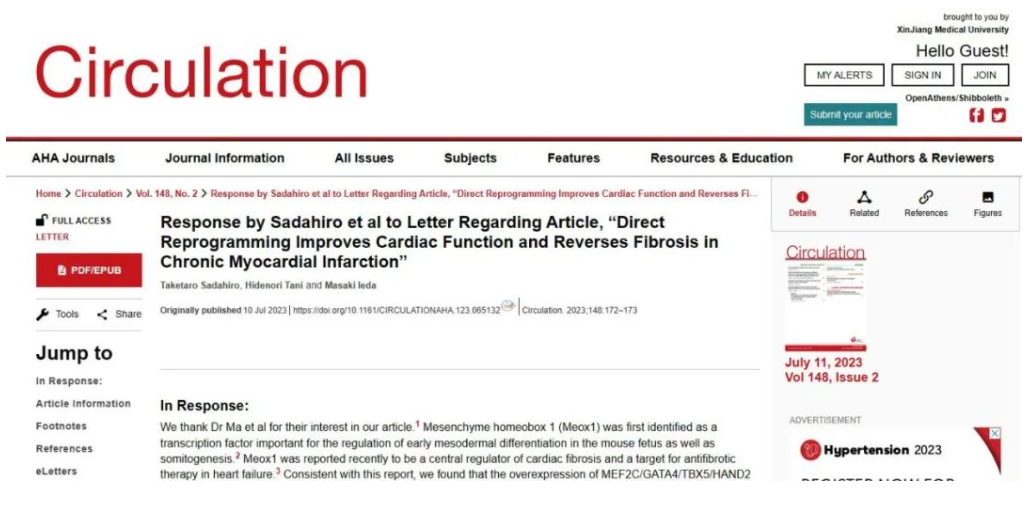 近日,新疆医科大学心血管病中心团队在马依彤教授领导下,马翔教授指导的博士生在循环领域权威期刊Circulation发文《Letter by Teng et al Regarding Article, “Direct Reprogramming Improves Cardiac Function and Reverses Fibrosis in Chronic Myocardial Infarction”》,对近期的一项有关MGTH2A在成年心肌细胞中的表达促进心肌再生的研究发表评论,该研究通过转录因子诱导直接重编程成心脏肌细胞(iCMs),使其具备心肌再生能力,从而预防和治疗慢性心肌梗死。观点得到国际心血管专家认可,已同期在线发表。
