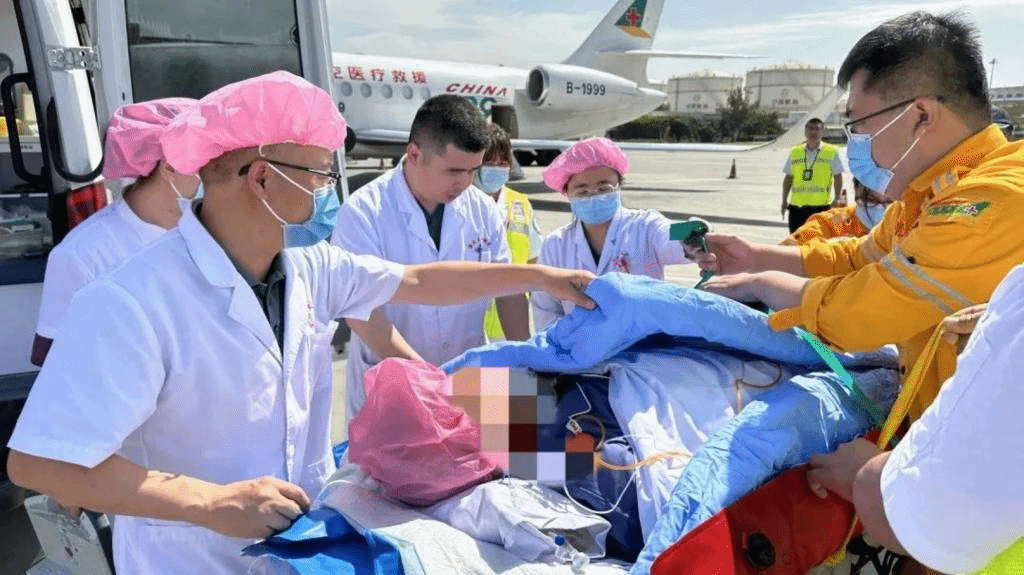 转运当日,新医大一附院120将患者转运至乌鲁木齐地窝堡国际机场,宋云林主任全程跟随中国航空医疗救援队一同将患者安全转运至山东省遥墙机场,由山东省立医院重症专家医疗队接手,安全将患者转运至山东省立医院继续后续治疗。