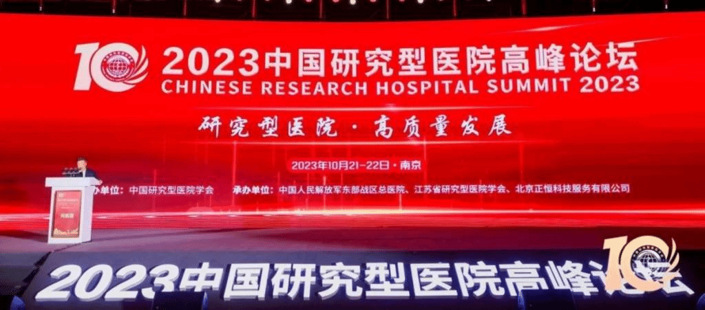 2023年10月21日,中国研究型医院高峰论坛大会在南京召开,会上公布了2023年研究型医院评价遴选结果,并对医学研究和创新实践工作中做出突出贡献的科技人员及创新项目进行了表彰。