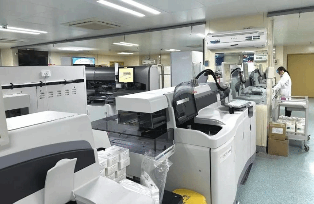 通过气动传输系统,由医学检验中心门急诊引入了两条生化免疫流水线自动化系统,与气动传输系统无缝连接。在气动传输系统的作用下,标本能够以单管传输的方式直接进入检验科的生化免疫流水线,从样本签收、离心、去盖等检验全流程实现自动化处理,无需人工干预,真正实现”无人值守“实验室,降低了从样本运输到实验室检测等环节的人力成本,缩短了检验全流程的TAT(规定的检测时间),进一步提升了检测效率,同时也提高了医院样本的运转效率和结果质量,更能避免生物安全风险,保障医护人员安全。