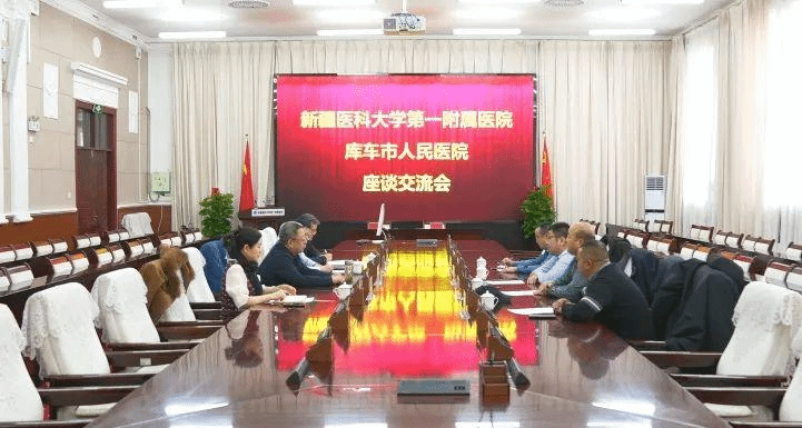 1月22日,库车市人民医院党委书记第继周一行来到新疆医科大学第一附属医院走访交流。