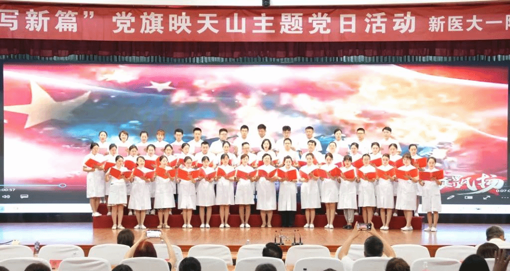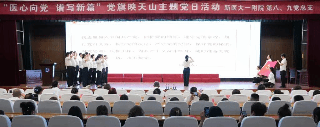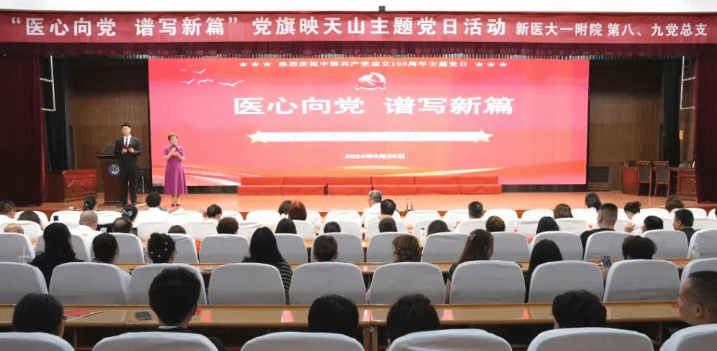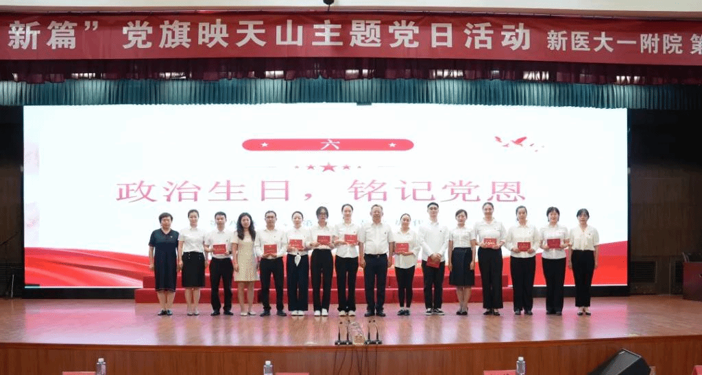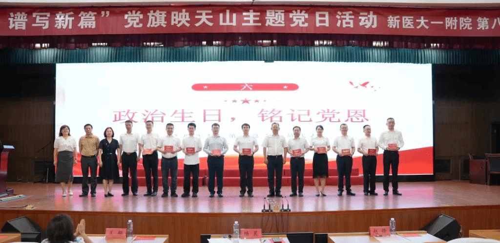 6月26日,为庆祝中国共产党成立103周年,新医大一附院第八、第九党总支开展“医心向党 谱写新篇”党旗映天山主题党日活动。
