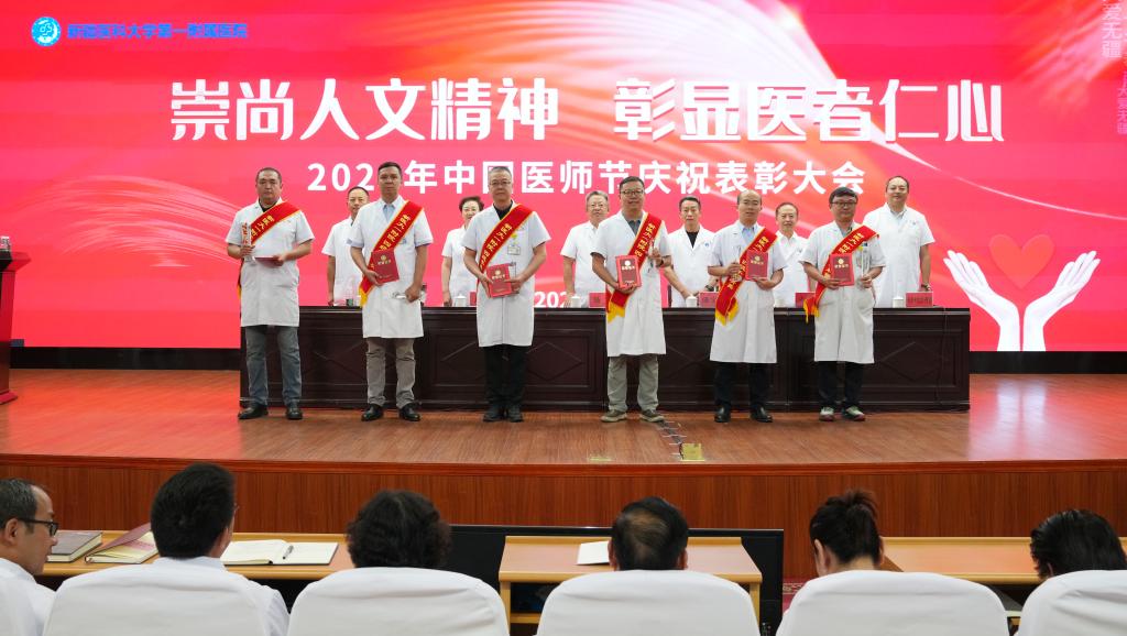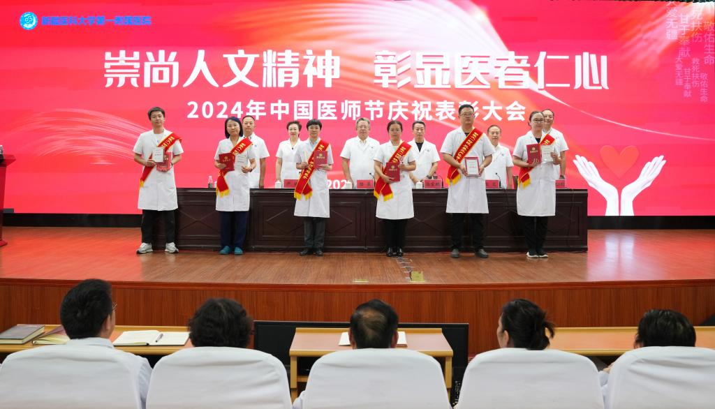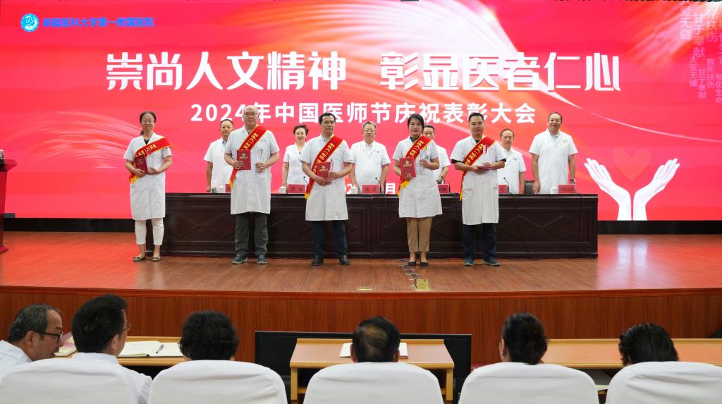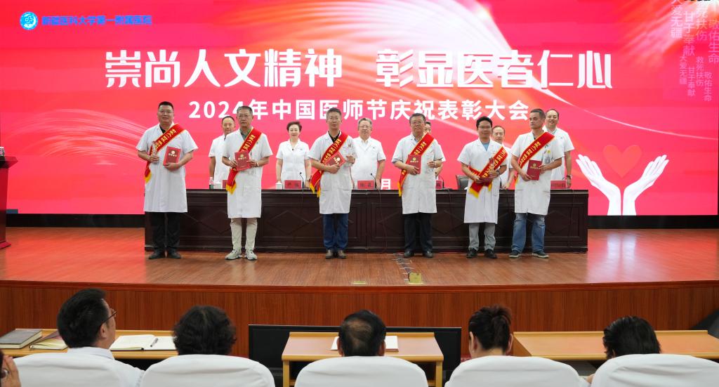 8月21日,新疆医科大学第一附属医院在临床教学楼会议室举行2024年中国医师节庆祝表彰大会。
