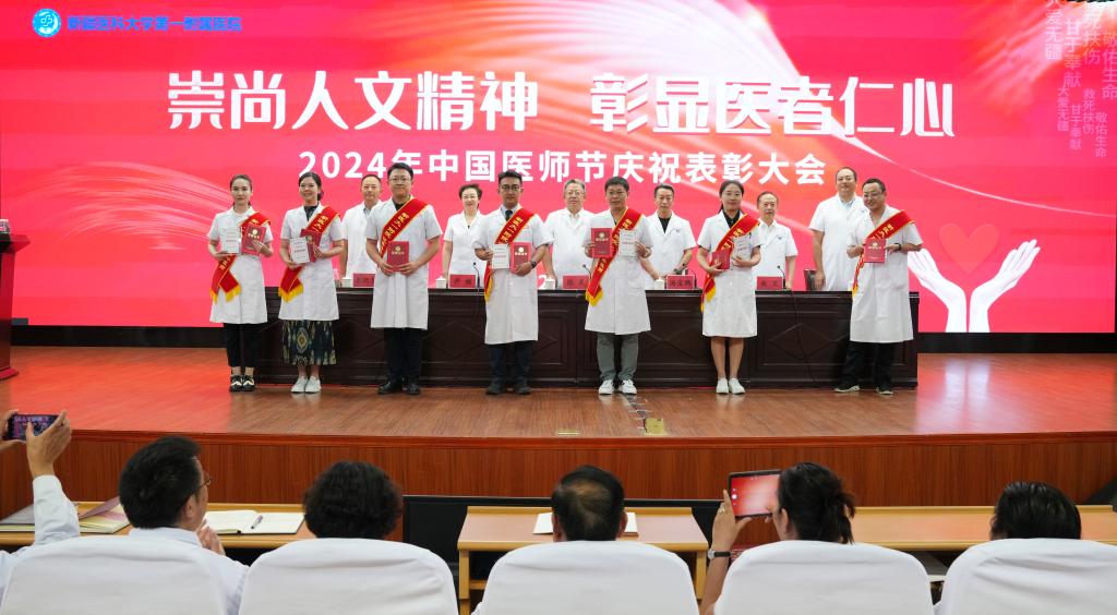陆晨代表医院党委向常年奋战在一线的全体医师们致以节日的祝贺和诚挚的感谢!他说,党的二十届三中全会吹响了进一步全面深化改革、推进中国式现代化的“进军号”,作为实施健康战略的主力军,我们医师队伍所肩负的责任更加重大,使命更加光荣。长期以来,新医大一附院人始终承医者之风范,续优良之传统,不忘初心,恪尽职守,默默耕耘,勇于担当,用精湛的医术和不懈的努力,诠释着“敬佑生命、救死扶伤、甘于奉献、大爱无疆”的崇高职业精神,铸造了新疆各族人民群众的健康梦。本次表彰是对全院医师辛勤付出、致力提升医疗质量与安全工作的肯定和激励,希望全院医师能继续在岗位上努力奋进,勇攀高峰。