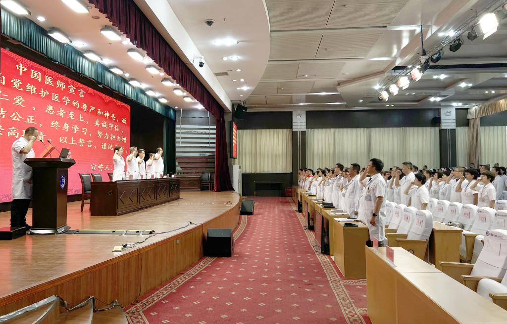 会上,新医大一附院党委委员、副院长鲁晓擘带领全体医师重温《中国医师宣言》誓词。