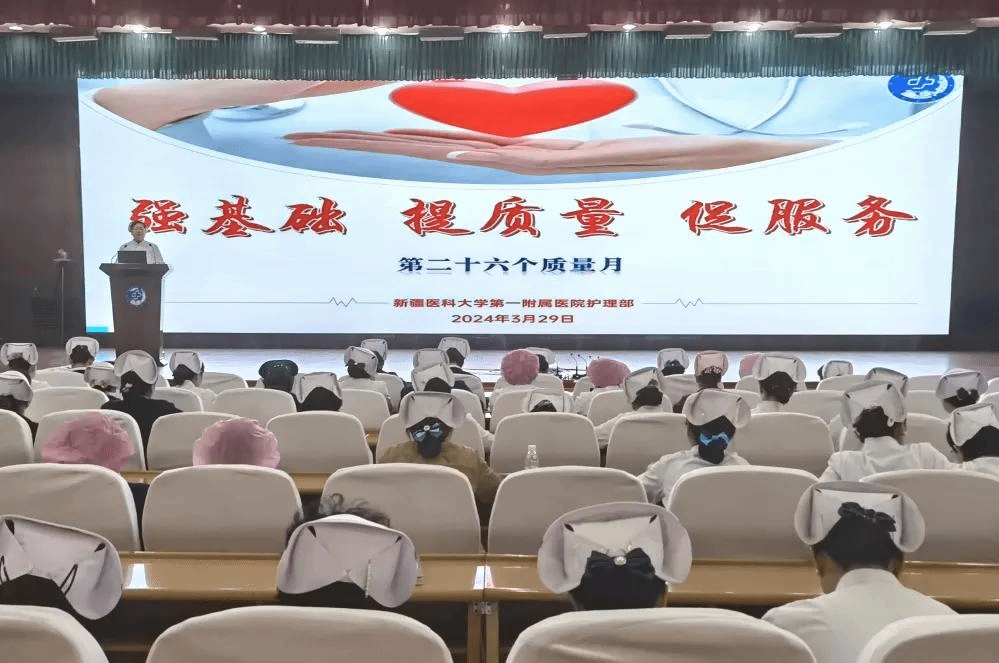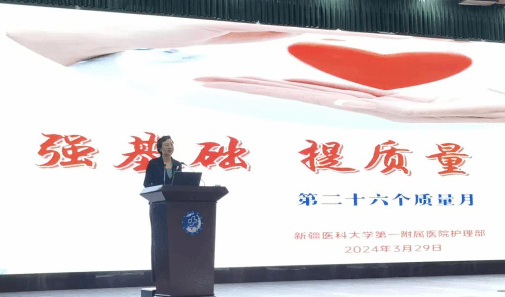 为实现优质护理服务扩面提质,推动护理高质量发展,有效提升患者获得感,3月29日上午,新医大一附院护理部举办“强基础、提质量、促服务”质量月活动。新医大一附院党委委员、副院长严媚参会并讲话,护理部杨益主任主持会议,全院护士长共同参加。