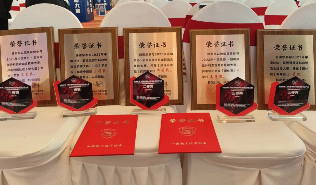 近日,中国技协2023年职工职业技能竞赛联赛——第一届“中国技协·超级显微外科血管吻合技能大赛”在成都举办。新疆医科大学第一附属医院Yasargil显微外科训练中心选派优秀队员组成代表队,在比赛中获得了团体赛三等奖、资深专家组二等奖、个人精英组优胜奖及学生组三等奖的好成绩。