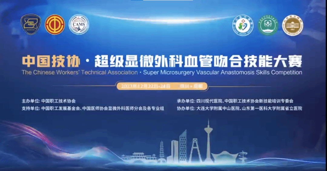 本次比赛由中国职工技术协会主办,中国职工发展基金会、中国医师协会显微外科医师分会及各专业组支持,四川现代医院、中国职工技术协会新技能培训专委会承办,大连大学附属中山医院及山东第一医科大学附属省立医院协办。此次大赛是国内首次举办的显微外科血管吻合技能大赛,也是当前国际和国内同类比赛中最具权威性的赛事,来自全国的69支团体赛代表队、261支精英组队伍、23支资深专家组队伍和29支学生组队伍,总计783位选手参赛。选手们从初入显微外科学子到从医超过40年的资深专家,囊括了中国显微外科领域的老、中、青三代,创下国内显微外科界的历史之最。