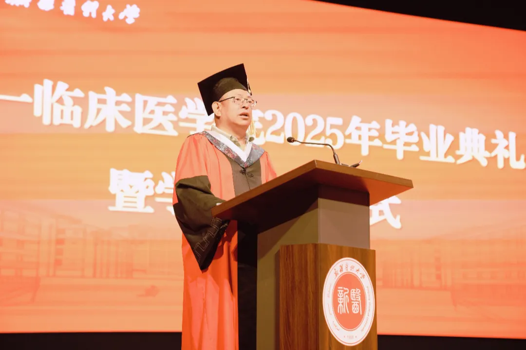 陆晨代表医院和学院党委向全体毕业生致以最热烈的祝贺。他充分肯定了毕业生们在校期间的努力与成长,并对他们未来的医学之路提出殷切期望:一是始终胸怀“国之大者”,做信念如磐的追光者。希望你们将个人理想融入民族复兴伟业,听党话、跟党走,做党和人民信赖的健康卫士。二是始终精进医学技艺,做永不止步的攀登者。希望你们以终身学习攀登医学高峰,精进技艺,努力成为医术精湛、值得托付的良医。三是始终恪守医德医魂,做仁心似玉的守护者。希望你们常怀悲悯与敬畏之心,尊重同仁,营造和谐奋进的医疗环境。四是始终勇担时代之责,做开拓创新的奋进者。希望你们响应时代召唤,积极投身改革实践,到祖国和人民需要的地方去,在平凡岗位创造不凡业绩,为构建人类卫生健康共同体贡献更多新医力量。