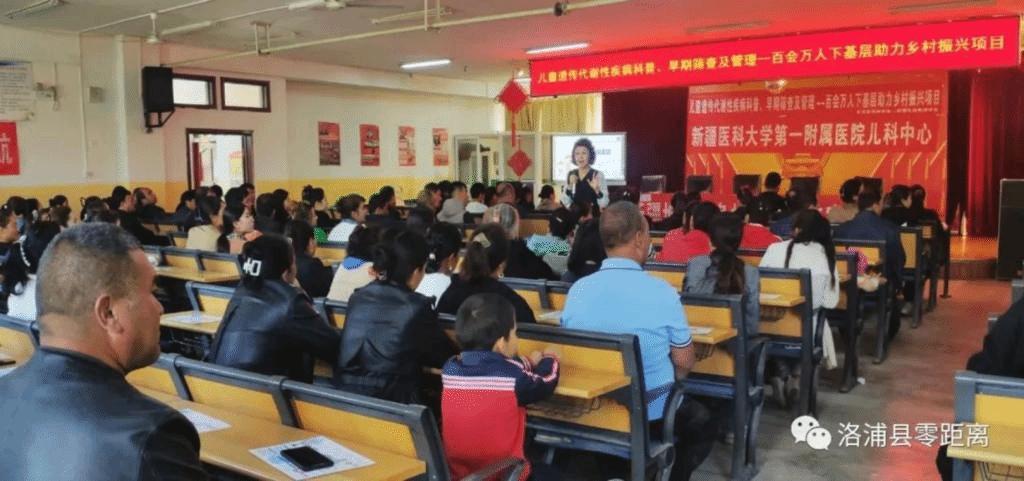 米热古丽·买买提教授为群众科普儿童遗传代谢病。张雁超 摄在为期三天的义诊活动中,自治区科协义诊团队为布亚乡儿童做了关于遗传代谢性疾病及矮小症儿童的全面筛查,新疆医科大学第一附属医院儿内四科主任米热古丽·买买提教授为布亚乡群众科普儿童遗传代谢病早期筛查及管理要点,新疆科普杂志社编审阿拉吾丁·阿不都热依木同志还为群众分发了宣传单页并对群众提出的问题进行了一对一解答。