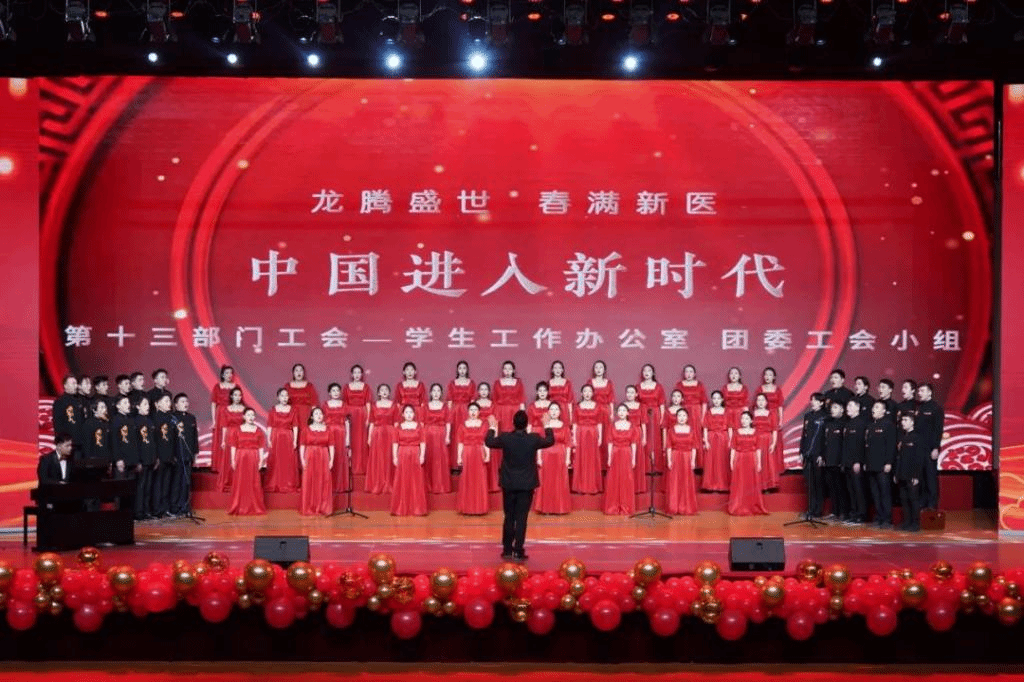 近三个小时的演出形式多样、亮点纷呈,气氛热烈、高潮迭起。新医大一附院职工通过合唱、舞蹈、情景剧、配乐诗朗诵等丰富多样的节目,全面展现了医院各岗位职工坚守担当、敬业奉献的职业精神,为现场观众打造了一场精彩绝伦的新年文化大餐,诠释着一附院人激情奋进、昂扬向上、开拓创新的良好精神风貌,彰显出职工文化的强大凝聚力、影响力和生命力,更展现了医院高质量发展的累累硕果。