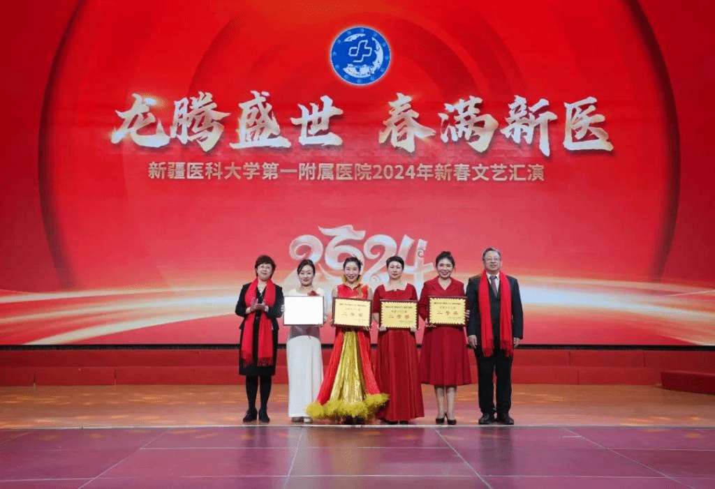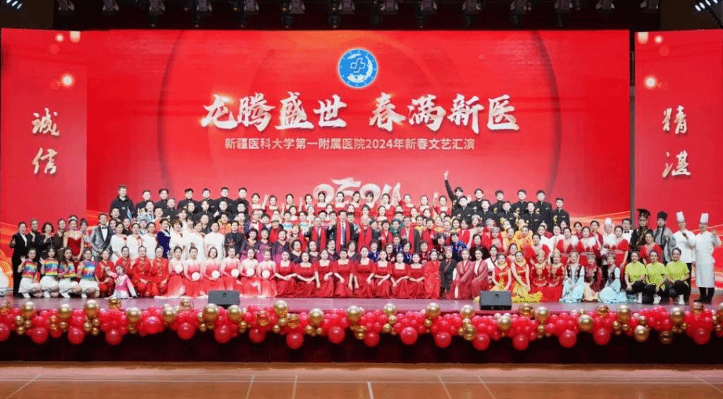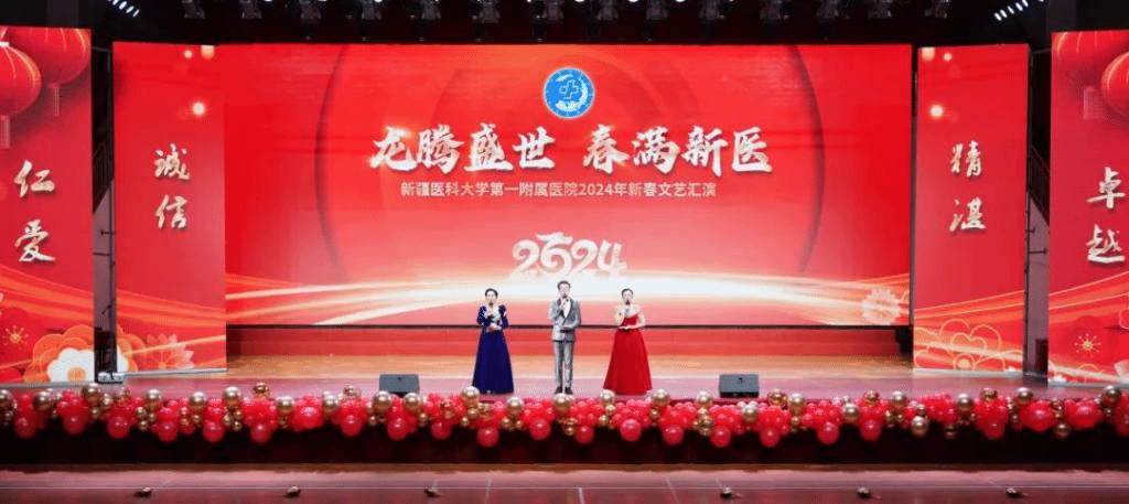 2月2日下午,新疆医科大学第一附属医院在职工之家(体育馆)举办“龙腾盛世 春满新医”2024年新春文艺汇演。