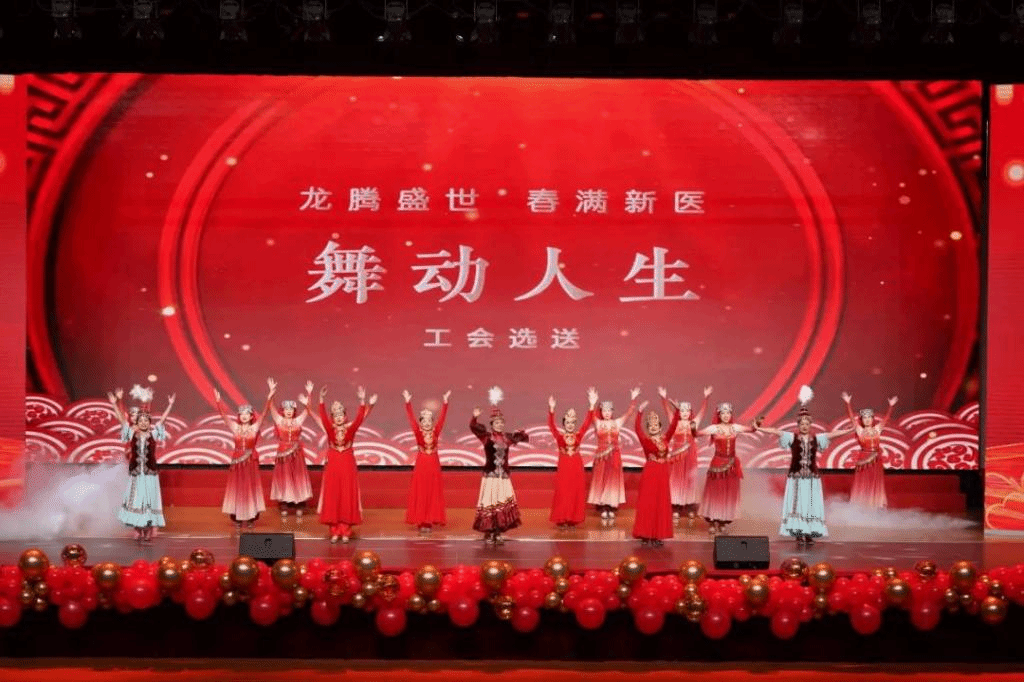 工会选送集体舞《舞动人生》以生动的表演展示了医务工作者丰富业余生活的美好图景,体现了医院职工文化欣欣向荣的景象。