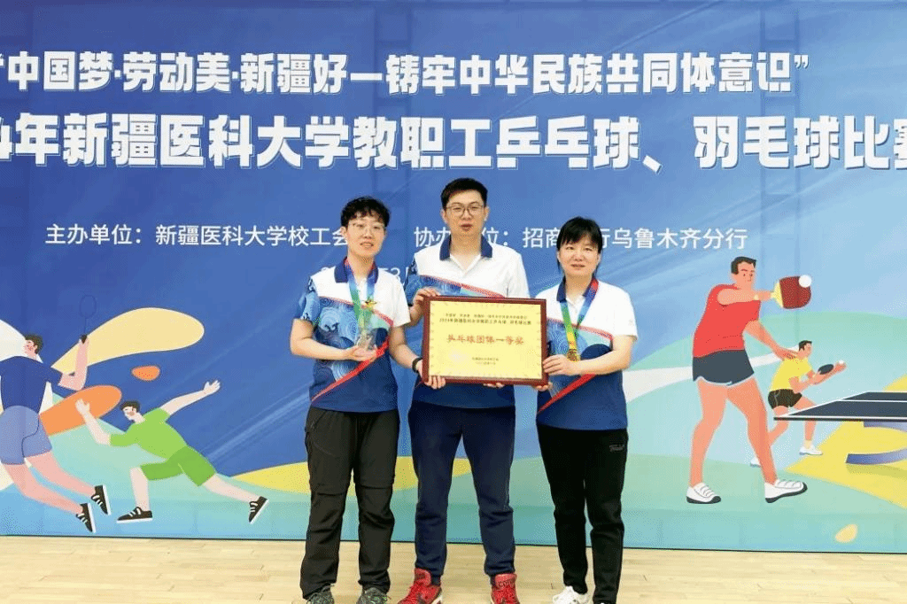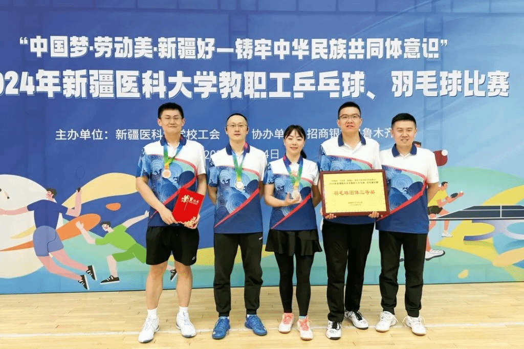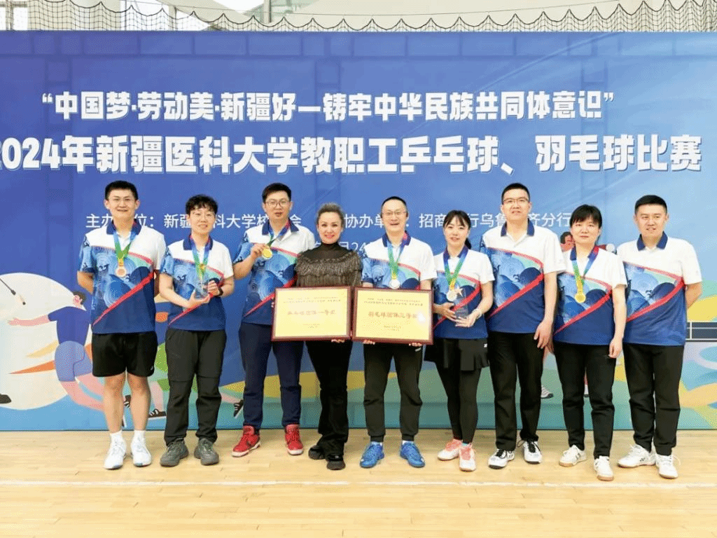 近日,“中国梦·劳动美·新疆好”——筑牢中华民族共同体意识”2024年度新疆医科大学教职工乒乓球、羽毛球比赛在新疆医科大学雪莲山校区举办,新疆医科大学第一附属医院职工代表队荣获乒乓球团体总分第一名、羽毛球团体总分第三名的好成绩!