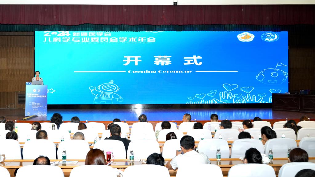 开幕式上,中华医学会儿科学分会主任委员王天有教授线上致辞,自治区医疗卫生指导中心党委副书记、主任、新疆医学会常务理事阿不拉江·库尔班现场致辞,新疆医学会儿科学专委会主任委员、新疆医科大学第一附属医院党委委员、副院长、儿科学院院长严媚教授主持会议并致辞。