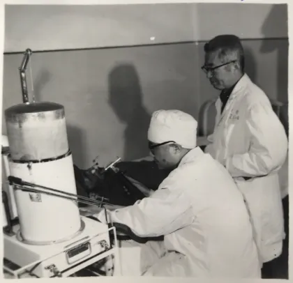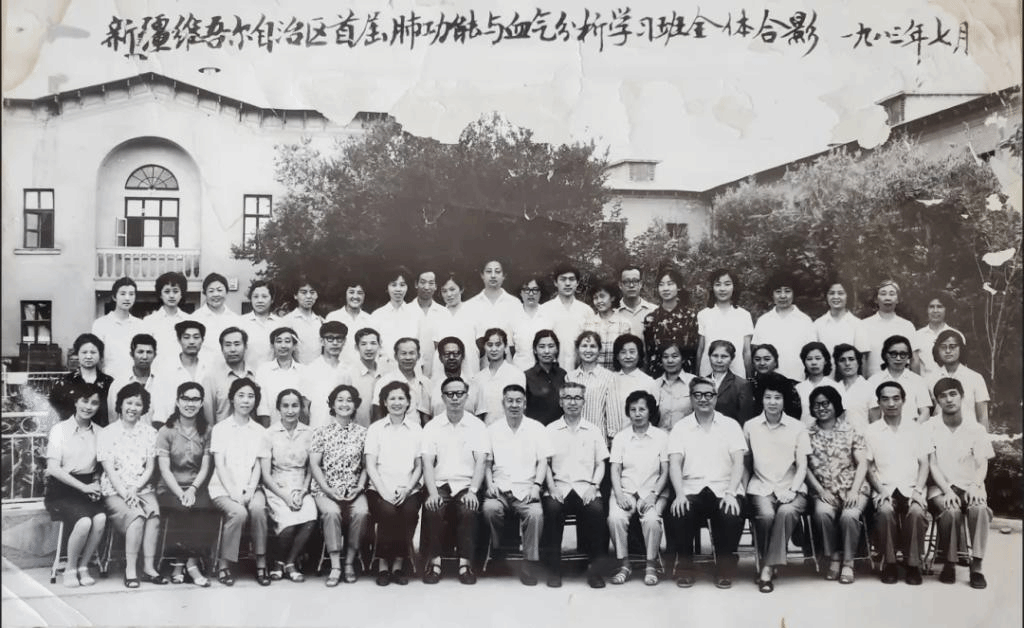 1983年7月,自治区首届肺功能与血气分析学习班全体合影(第一排右七:何恩泉)