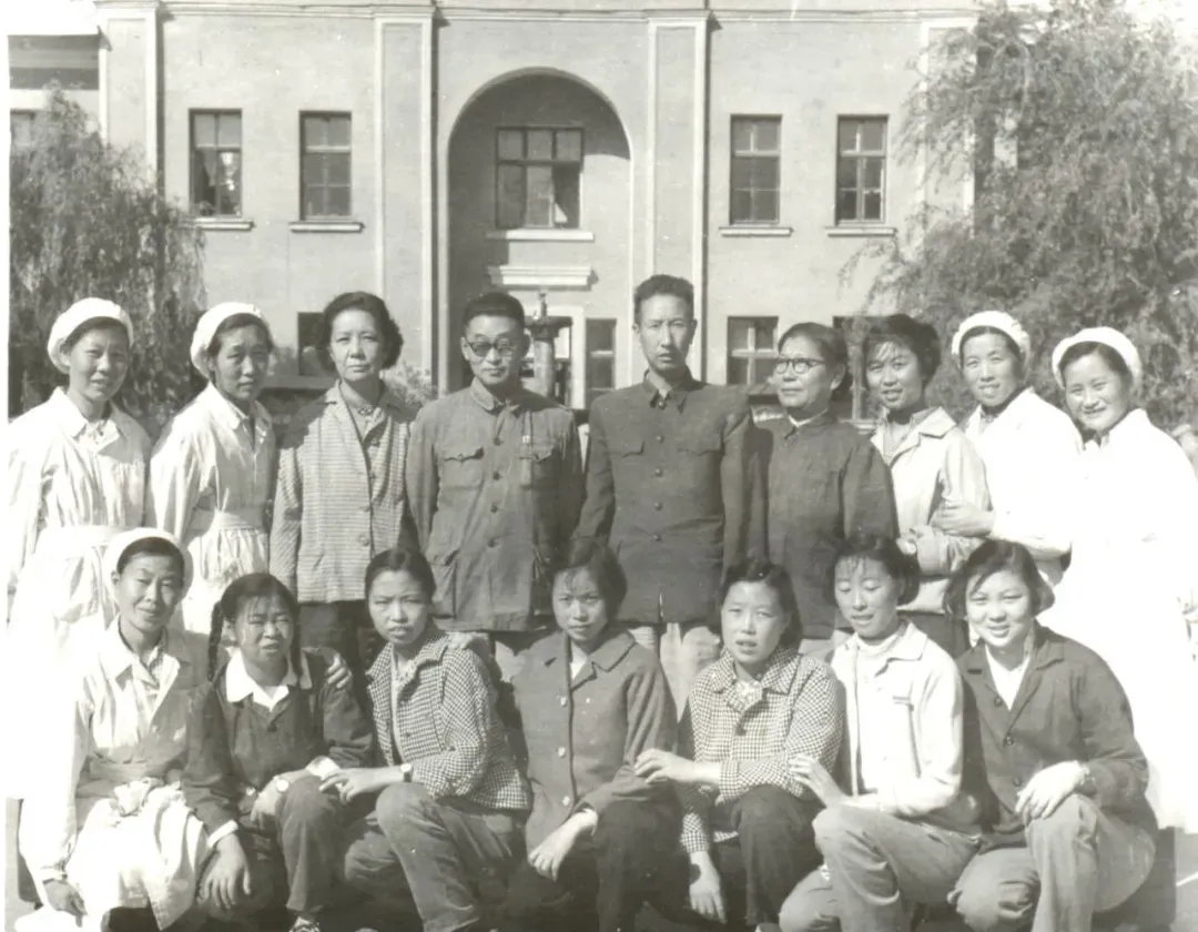 1965年,新疆医学院行政职能办公室职工与医务人员合影(第二排左四:张智卿)