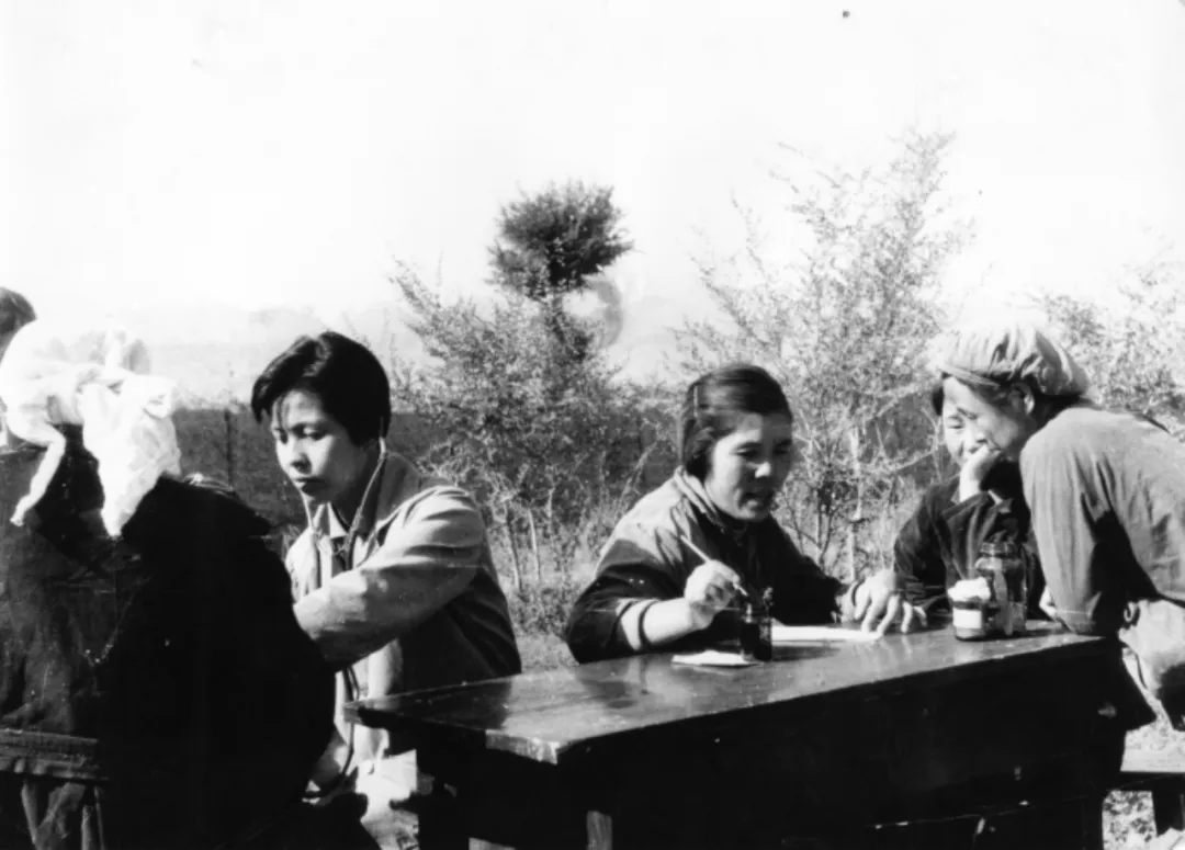 1972年,新疆医学院附属医院医疗队深入木垒县农村为当地农民义诊(左二:黎玉秀)
